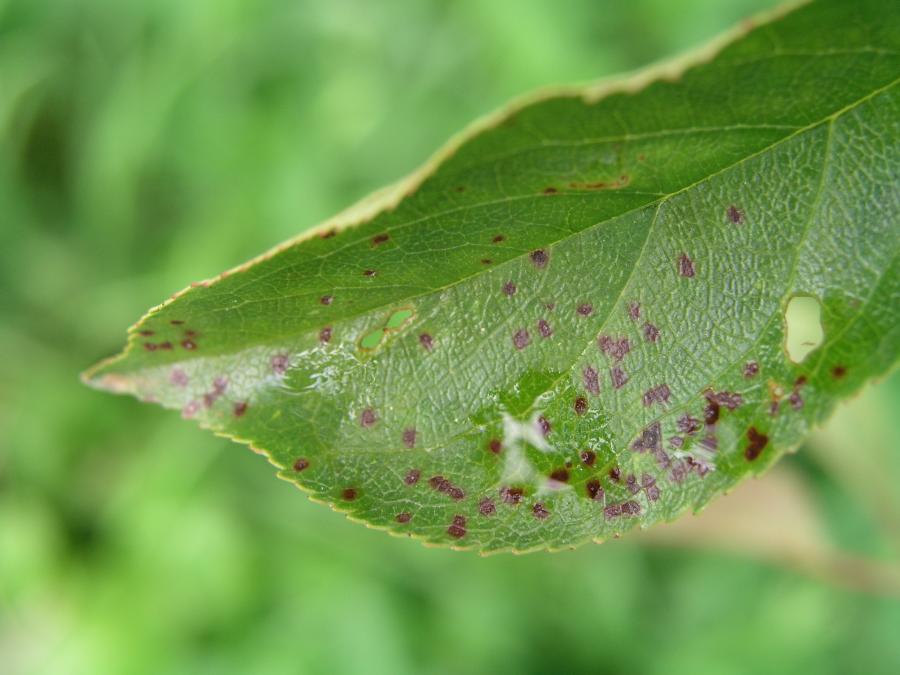 Izazivač bolesti: Gljiva prezimljuje na opalom lišću na tlu. U proleće dolazi do infekcije drveća koje pušta nove mladice. Po vlažnom, toplom vremenu obrazuju se nove spore, koje uzrokuju novu infekciju tokom vegetativnog perioda. Usled toga izazivač se veoma brzo šir